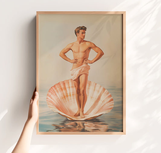 Male Birth of Venus Retro Poster - Retro Masculinity & Queer Home Decor