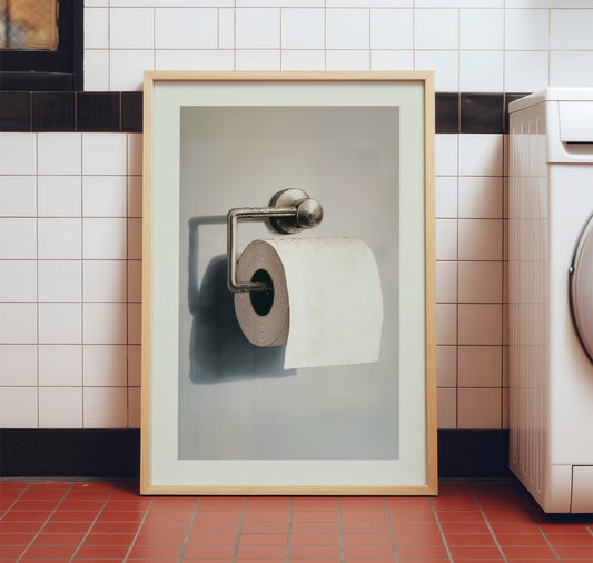 Toilet Paper Roll Minimalist Poster - Funny Bathroom Wall Art - Quirky Modern Still Life Matte Print
