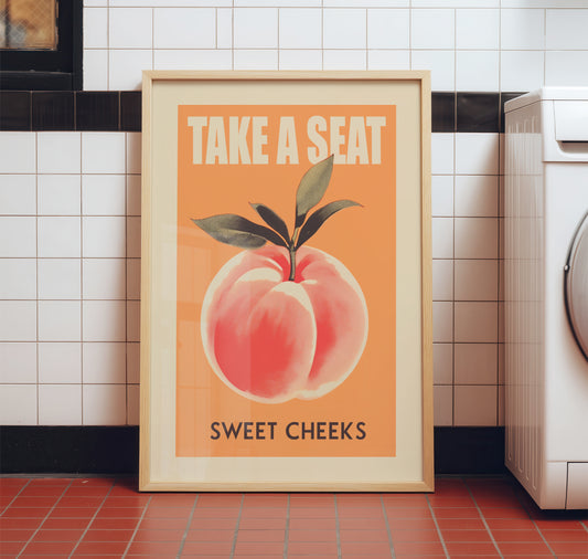 Funny Toilet Poster - Take a Seat Sweet Cheeks Peach